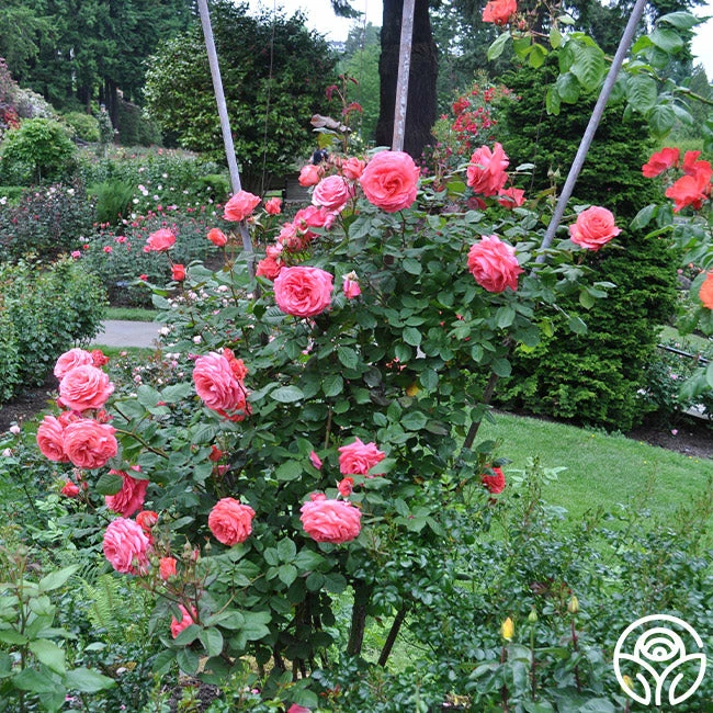 VERY FRAGRANT! Bred from Fragrant Cloud, this continual blooming, intensely fragrant Climbing Rose with pointed buds opens into fully double blooms of salmon, with slight mocha undertones. She is a very uniquely colored rose with large, mid-green foliage. This continual bloomer does well in almost every zone while thriving in Zones 6-9.
