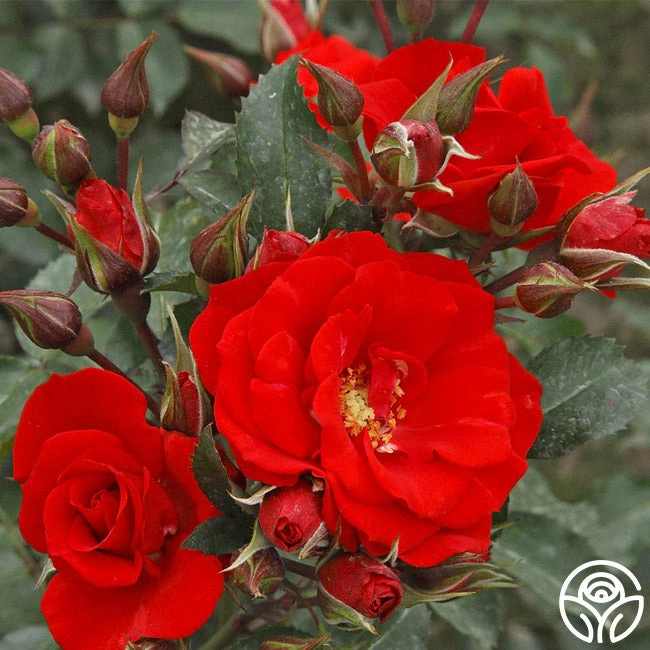 Best in zones 5-10, Arborose Orange Flare is a brilliant orange-red colored Climbing Rose with semi-double flowers that is a favorite of honeybees! She blooms in flushes throughout the season and will climb up to about 6’ tall. Her 2 ¾” blooms feature about 16 petals each but have limited scent. Her abundant clusters of roses will cover a trellis in no time and will make a stunning focal point in the garden.
