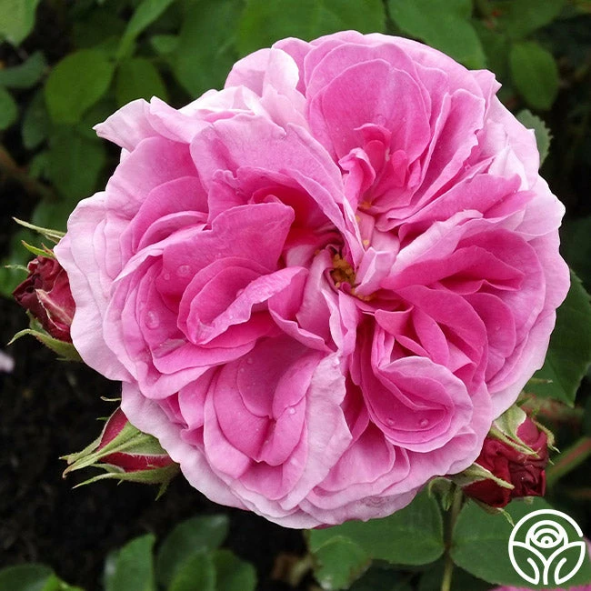 One of the most beautiful of all Old Garden Roses and the best for warmer climates, Baronne Prévost produces very fragrant, voluptuous, fully double, 4” blooms with 40+ petals. Her flowers are deep rose-pink with a moderate damask fragrance and open flat and quartered with a button eye. Baronne Prévost is an upright, vigorous, well-foliaged bush and an excellent choice for exhibition.