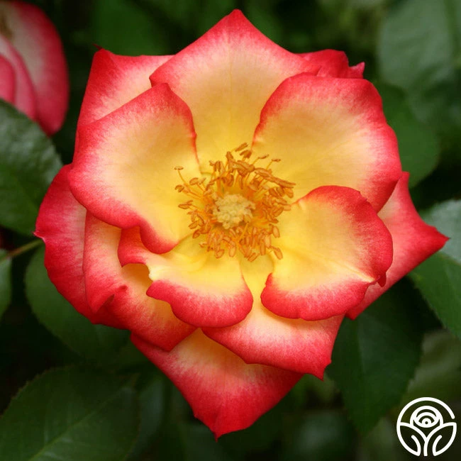 Betty Boop has medium to large, semi-double 3″ blooms of yellow-ivory edged with cherry-red that open to show golden centers. One of the most colorful of roses, her blooms are long lasting and have a lovely, fruity fragrance. Betty Boop is a naturally rounded plant with glossy, dark-green leaves that show off her bright blooms. She’s hard not to notice!