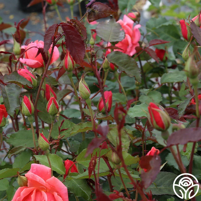 Start the party in the garden with Carefree Celebration. Her orange to orange-red and peach, double cupped, 2 ½” blooms are set against medium green, matte foliage. Sometimes showing as coral, her flowers are gently fragrant and she is hardy down to zone 4!