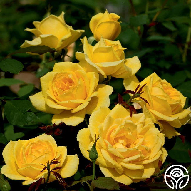A sport of Strike It Rich, this rose is graced with clusters of beautiful yellow blooms with an occasional kiss of ruby red. Ch-Ching will make you feel like you hit the jackpot with her strong fruit and spicy fragrance and 4” blooms on a tall, upright bush. This ARS Winner is a vigorous grower with new growth in a delightful shade of red aging to medium, semi-glossy, dark green foliage. We love this bright, clear yellow rose in cutting gardens for zones 5-10 as she really pops in the garden with the brightest coloring!