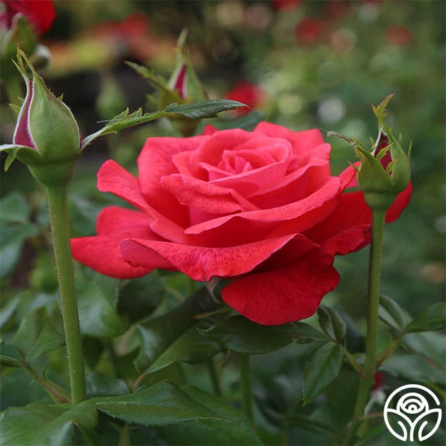 Cinnamon Dolce is a vigorous, upright plant producing exhibition-quality blooms. Her blooms have a cup-like form with 30+ brick red petals scattered with deep pink specks. She is exceptionally fragrant, and her flowers bloom continuously against dark green, semi-glossy foliage. Cinnamon Dolce is also very disease resistant to mildew and rust, making her a great rose for western states.