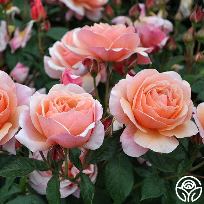 Douglas Gandy is a romantic, apricot rose that produces quantities of beautiful, semi-double, rich 4” apricot blooms with 24+ petals each. Flowers are borne in clusters on an outstanding, upright bush that is well clothed in rich green foliage. Douglas Gandy is a continual bloomer perfect for zones 5-10.