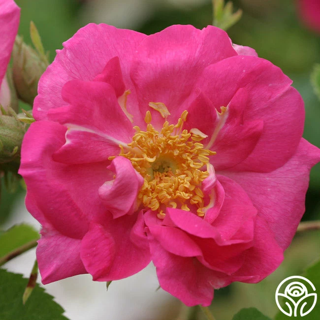 The first of the Portland Roses, Duchess of Portland is a fragrant rose of bright crimson with semi-double, 3.5” blooms. She is an exceptional sight when in full bloom. Expect her to grow as an upright, spreading plant with medium-green foliage. Duchess of Portland repeat blooms throughout the season and will stay between 2-4’ tall and 2-3’ wide.