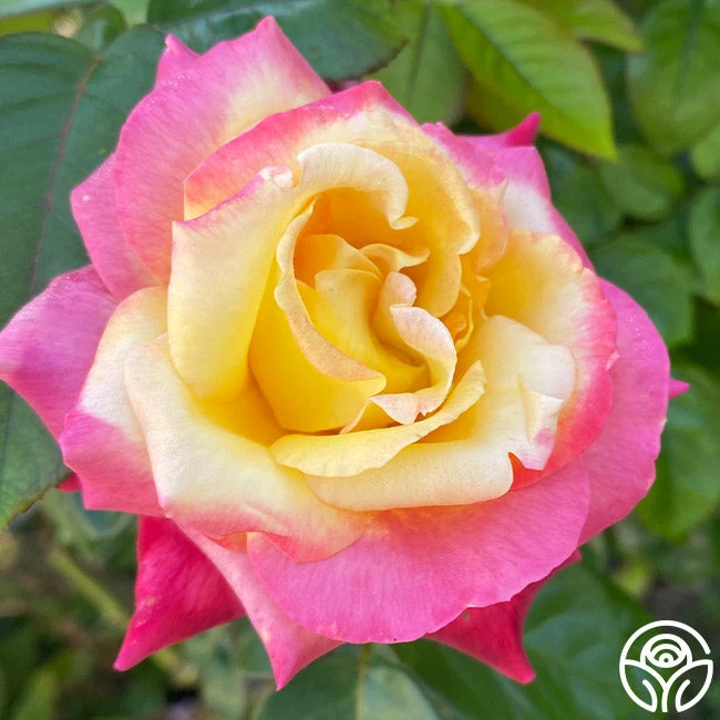 It’s easy to become enchanted with this beautifully colored, classically shaped Hybrid Tea. Enchanted Peace’s buds open to a yellow/orange blend with orange along the edges of the petals. As the flower ages, she quickly changes to more yellow edged by brilliant pink. It’s like having two roses in one! This bushy, upright plant has very glossy, green foliage and will produce an abundance of very fragrant blooms throughout the season. Happy to grow anywhere, she performs as well in containers as she does in the garden.