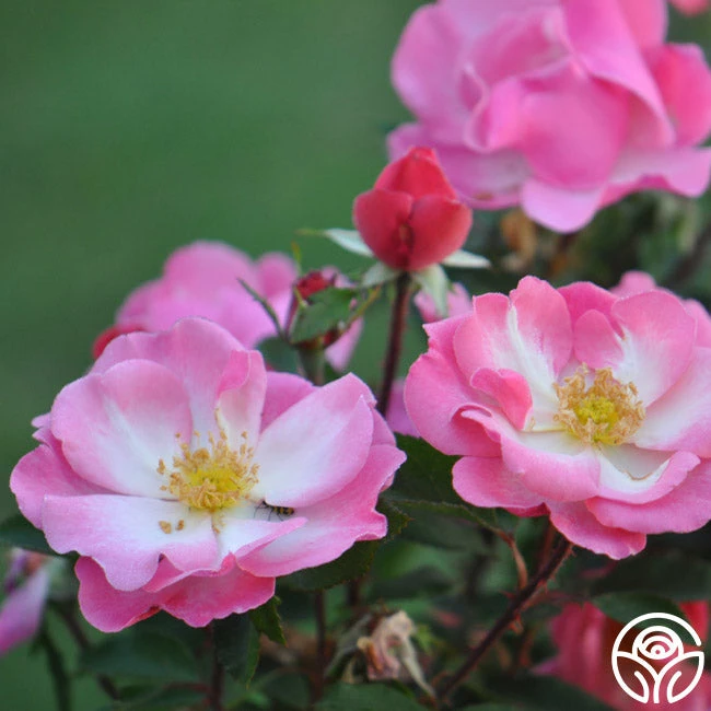 Bred here at Heirloom, this moderately fragrant rose is sure to make a statement in your garden. Fashion Statement has medium sized blooms with white centers that blend to a stylish crisp pink toward the edges of her 8-12 petals. The lovely flowers are set atop a continually blooming, bushy plant that densely covers itself with striking foliage.