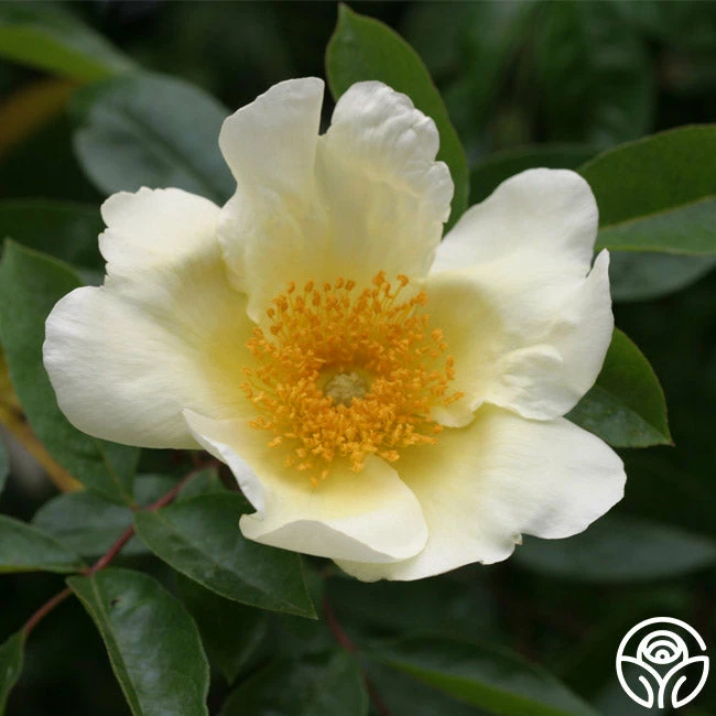 Introduced in 1918, Mermaid produces very large, 4″, single, canary yellow flowers with 5 petals opening to reveal a soft white coloring. Her blooms are slightly scented and borne in clusters with showy red stamens. Mermaid features glossy foliage and wicked thorns. So watch out! This repeat blooming Climber will take off up to 11’ tall so give her lots of space and keep her away from walkways where you may brush up against her. Mermaid is a great choice for covering a large area of fence or trellis for a statement piece in the garden.