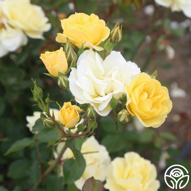 Sky’s the Limit is a delightfully sunny, medium-sized rose with butter yellow, 5″ blossoms of 17-25 ruffled petals. Expect her clusters to be abundant and quickly re-bloom making this Climber a good choice for a trellis, fence, or wall that needs a splash of bright color.