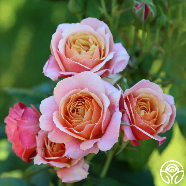 Bred in the US, this English-style rose has a compact, tidy habit, and great disease resistance. Reaching 3-4’ in height, this rounded bush will bloom in flushes throughout the season and wow with its multicolored flowers of soft apricot-gold and dark pink reverse petals. With long, strong stems and a fruity fragrance, this rose is a must-have addition to any home garden or cut flower farm. State of Grace, with gorgeous, double blooms opening to golden centers, will welcome not only neighbors but also butterflies and pollinators to your yard.