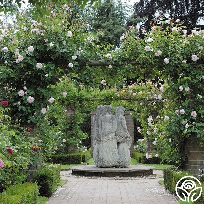 This delicate rose will bring charm to any garden with its magnificent growing power and stunning blooms. The Generous Gardener produces 4” flowers which are beautifully formed with soft glowing pink at the centers paling slowly to the outer petals. When the petals open they expose numerous stamens providing a waterlily-like effect. This rose has strong, elegantly arching growth with polished, dark green foliage, making an excellent Climber that tops out around 15’ high. This stunning rose loves to climb pergolas, walls, fences, large trellises, and more. Enjoy this continual bloomer in zones 4-11.