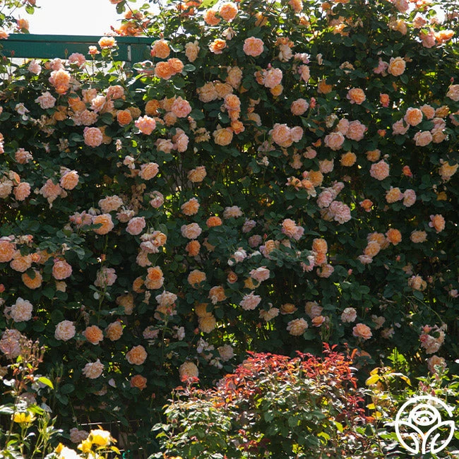 MUST HAVE! Bred right here at Heirloom Roses, The Impressionist is a stunning apricot blended rose with fully double, 4″ blooms of 100+ petals. Depending on the age of the bloom, expect to see a wide range of colors such as apricot, salmon, creamy pink, peach, coral, orange red, and gold. This Climber will train well on a trellis or fence topping out around 9-11’ tall and is perfect for a cut flower garden. We love her myrrh/old garden rose fragrance and unique, dark blue-green foliage. Check out all of The Impressionist’s amazing five star reviews and you’ll see why she easily wins Best in Show over and over again.