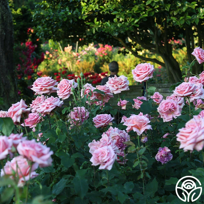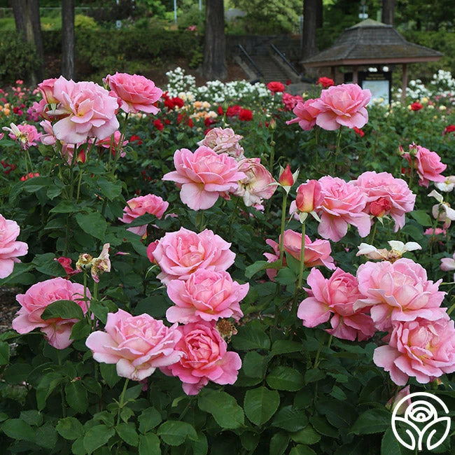 Named for the American artisan family, this tall, vigorous Hybrid Tea produces very fragrant, large, high-centered, classic blooms of pink and yellow blend. Tiffany has dark green, healthy foliage to accentuate her perfect, 4” blooms. She has a strong, lemon scented fragrance and shows off her colors best in the heat. A definite jewel of the garden!